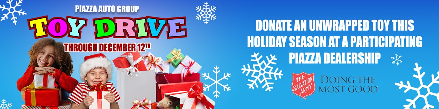 We hope with the support of our generous customers and our decided team of automotive experts, the Piazza Auto Group Toy Drive will be a huge hit. Helping to light up the holiday season of a local child will all make it worthwhile. It's what the holidays are truly about after all.