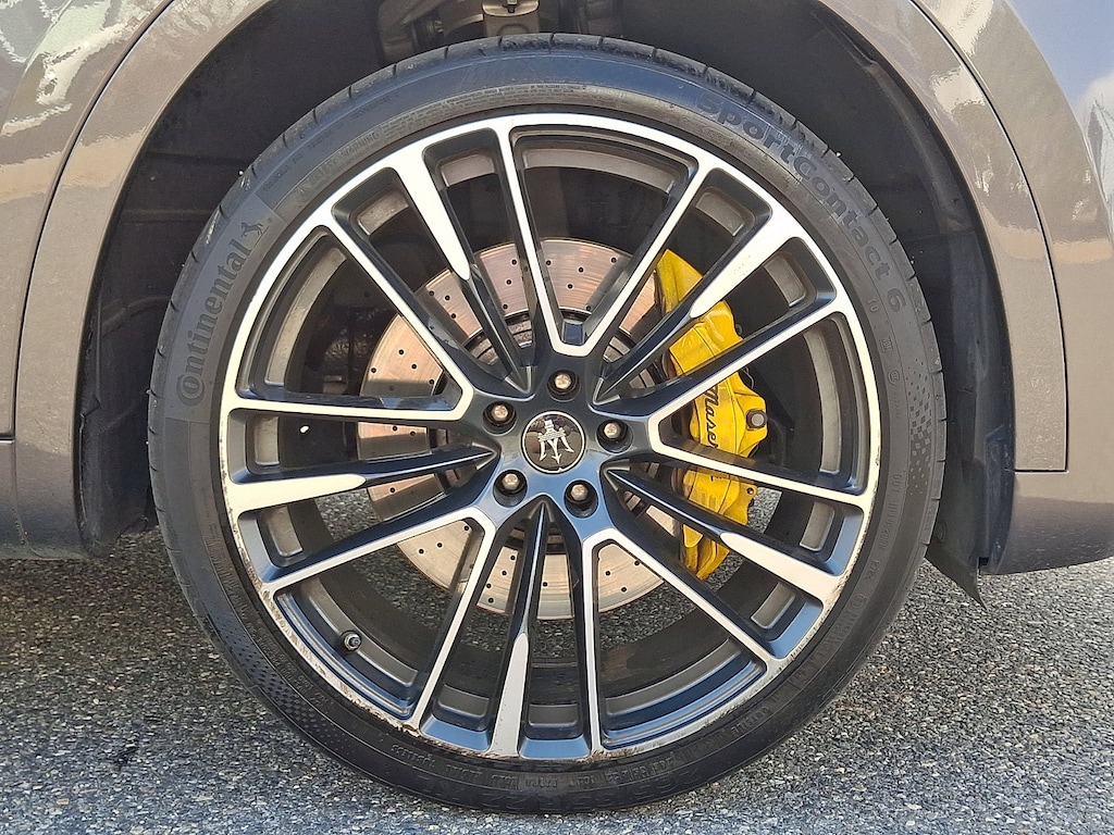 It features 12-Way Heated Power Sport Front Seats, 14 Speakers, 4-Wheel Disc Brakes, ABS brakes, Active Cruise Control, Adaptive suspension, Air Conditioning, Alcantara Headliner & Pillars, AM/FM radio: SiriusXM, Anti-whiplash front head restraints, Apple CarPlay/Android Auto, Auto High-beam Headlights, Auto-leveling suspension, Automatic temperature control, Bowers & Wilkins 1280W Ultra Premium Audio System, Brake assist, Comfort & Convenience Package, Dual front impact airbags, Dual front side impact airbags, Electronic Stability Control, Emergency communication system: Maserati Connect, Exterior Parking Camera Rear, Four wheel independent suspension, Front anti-roll bar, Front dual zone A/C, Full Premium Perforated Leather Upholstery, Garage door transmitter: HomeLink, Gloss Yellow Painted Brake Calipers, Heated door mirrors, Heated Rear Seats, Heated steering wheel, Heated Windshield Washer Nozzles, High Gloss Ebano Wood Trim, Illuminated entry, Leather Shift Knob, Leather steering wheel, Low tire pressure warning, Memory seat, Navigation System, Occupant sensing airbag, Outside temperature display, Overhead airbag, Overhead console, Passenger vanity mirror, Pieno Fiore Natural Leather Upholstery, Power door mirrors, Power driver seat, Power Liftgate, Power moonroof, Power steering, Power windows, Power-Adjustable Foot Pedals, Radio data system, Radio: AM/FM w/Maserati Intelligent Assistant, Rain sensing wipers, Rear anti-roll bar, Rear reading lights, Rear seat center armrest, Rear window defroster, Remote keyless entry, Security system, Soft-Close Doors, Speed control, Speed-sensing steering, Sport steering wheel, Steering wheel memory, Steering wheel mounted audio controls, Tachometer, Telescoping steering wheel, Tilt steering wheel, Traction control, Trident Logo Stitched on Front & Rear Headrests, Trip computer, Turn signal indicator mirrors, Upgraded Full Leather Upholstery, Ventilated Front Seats, Voltmeter, and Wheels: 22" Painted Staggered Orione Miron.