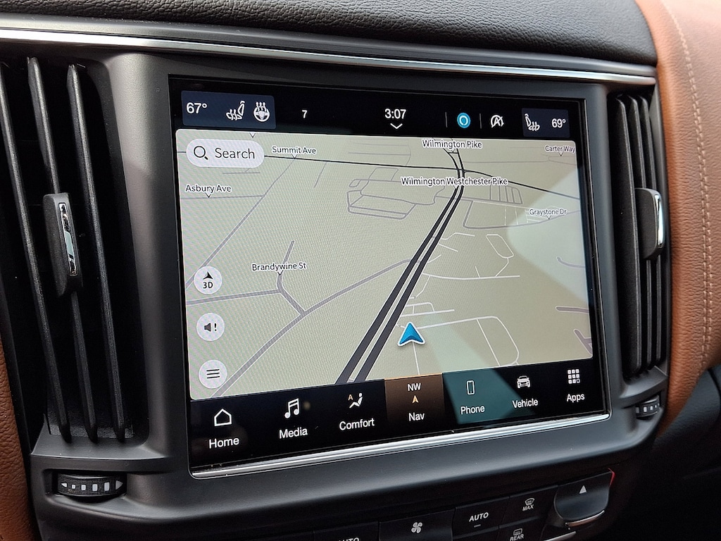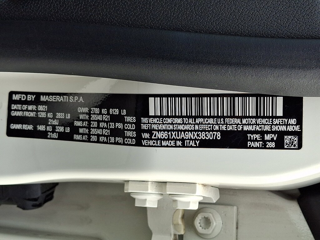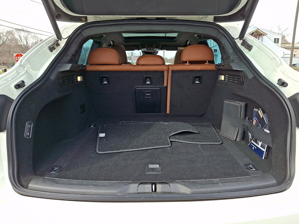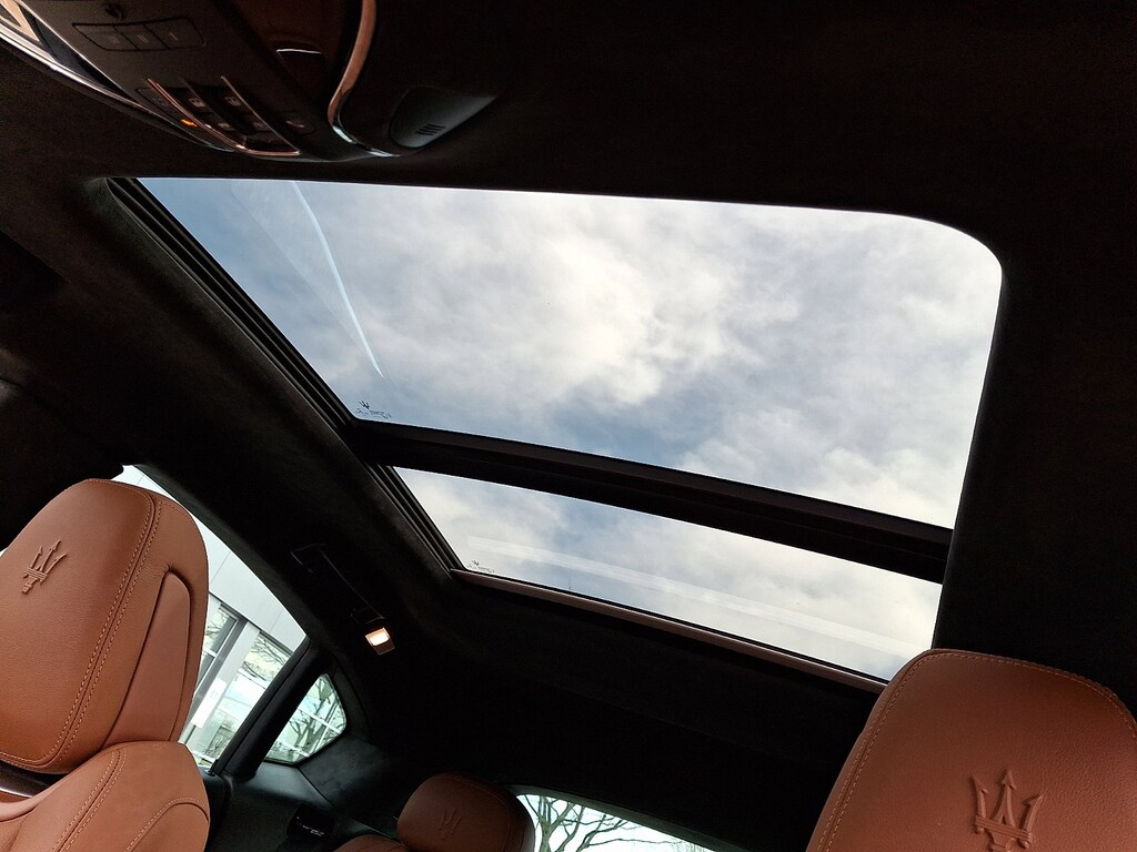 It features 12-Way Heated Power Sport Front Seats, 4-Wheel Disc Brakes, ABS brakes, Active Cruise Control, Active Driver Assist, Adaptive Cruise Control w/Stop & Go Function, Adaptive suspension, Air Conditioning, Alcantara Headliner & Pillars, Aluminum Column-Mounted Paddle Shifters, Anti-whiplash front head restraints, Apple CarPlay/Android Auto, Auto-dimming Rear-View mirror, Auto-leveling suspension, Automatic temperature control, Brake assist, Compass, Driver Assistance Package, Driver door bin, Driver vanity mirror, Dual front impact airbags, Dual front side impact airbags, Electronic Stability Control, Emergency communication system: Maserati Connect, Exterior Parking Camera Rear, Forward Collision Warning Plus, Four wheel independent suspension, Front anti-roll bar, Front dual zone A/C, Front reading lights, Garage door transmitter: HomeLink, Gloss Red Painted Brake Calipers, GT Sport Interior Package, GT Sport Package, harman/kardon 900 Watts Premium Audio System, Heated front seats, Heated steering wheel, High intensity discharge headlights: Bi-Xenon, Inox Sport Pedals, Leather Shift Knob, Leather steering wheel, Leather Upholstery, Low tire pressure warning, Memory seat, Occupant sensing airbag, Overhead airbag, Power driver seat, Power Liftgate, Power moonroof, Power steering, Power windows, Radio data system, Radio: AM/FM w/Maserati Intelligent Assistant, Rain sensing wipers, Rear anti-roll bar, Rear window defroster, Remote keyless entry, Speed-sensing steering, Steering wheel memory, Steering wheel mounted audio controls, Surround View Camera, Tachometer, Telescoping steering wheel, Tilt steering wheel, Traction control, and Wheels: 21" Machine Polished Helios.